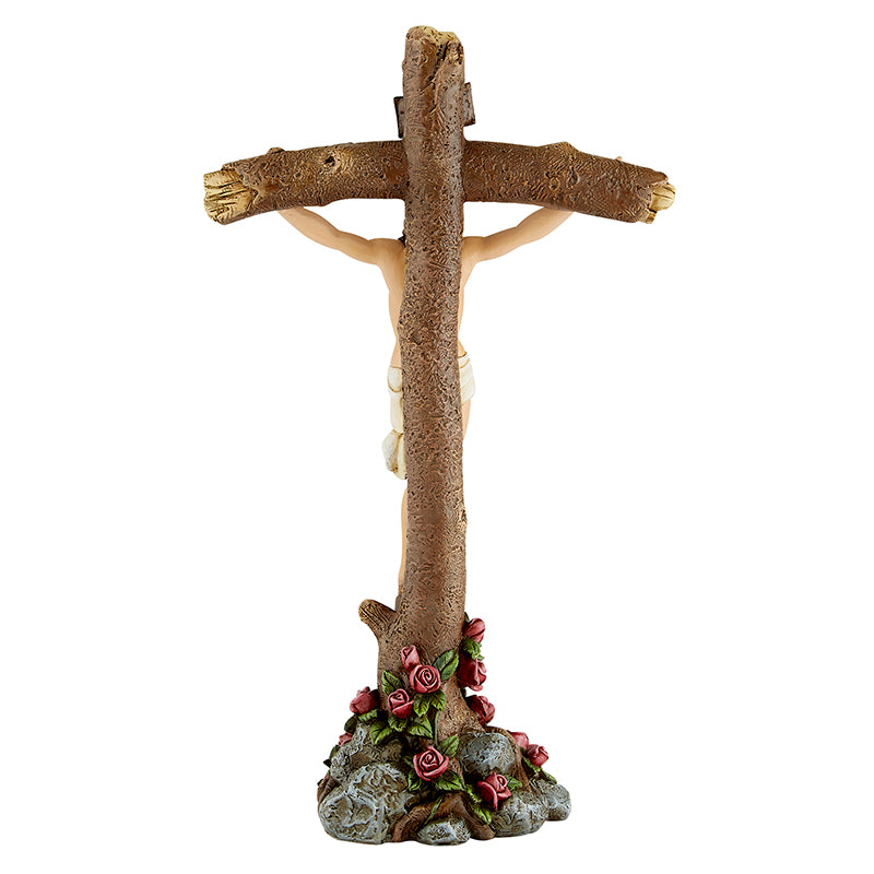Jesus Crucifix With Roses Standing Cross