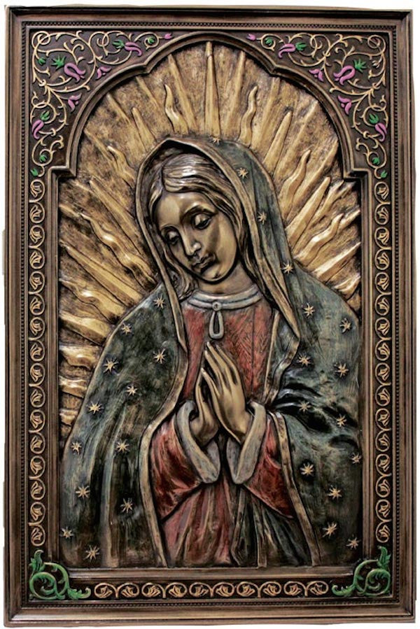 Praying Madonna Our Lady of Guadalupe plaque with hand painted accents. Beautiful gift for home, chapel or church. This plaque is from the Veronese collection. Very high quality gift to be treasured for a lifetime.