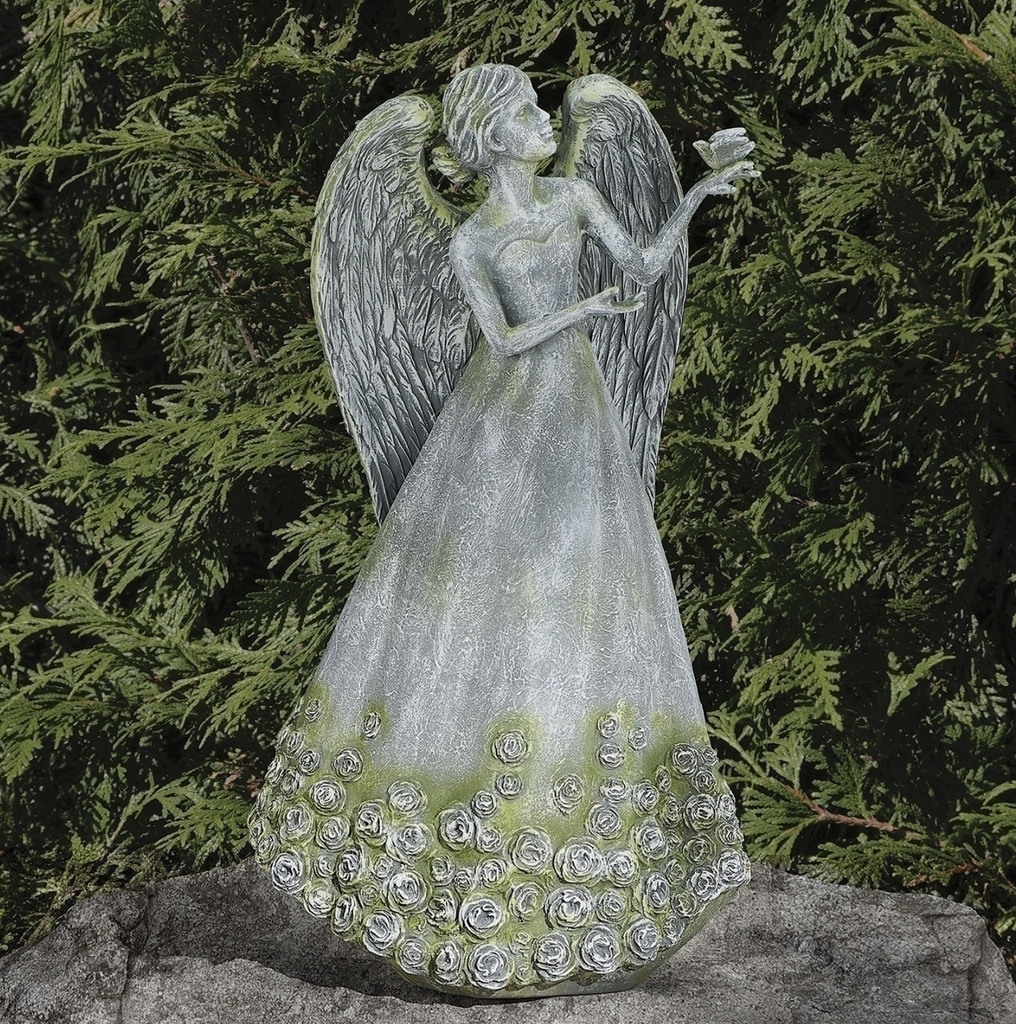 Angel With Roses And Dove Garden Or Memorial Figure